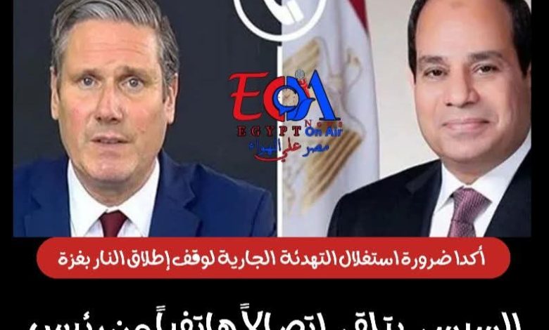 تلقى الرئيس عبد الفتاح السيسي اليوم اتصالًا هاتفيًا من رئيس وزراء المملكة المتحدة كير ستارمر