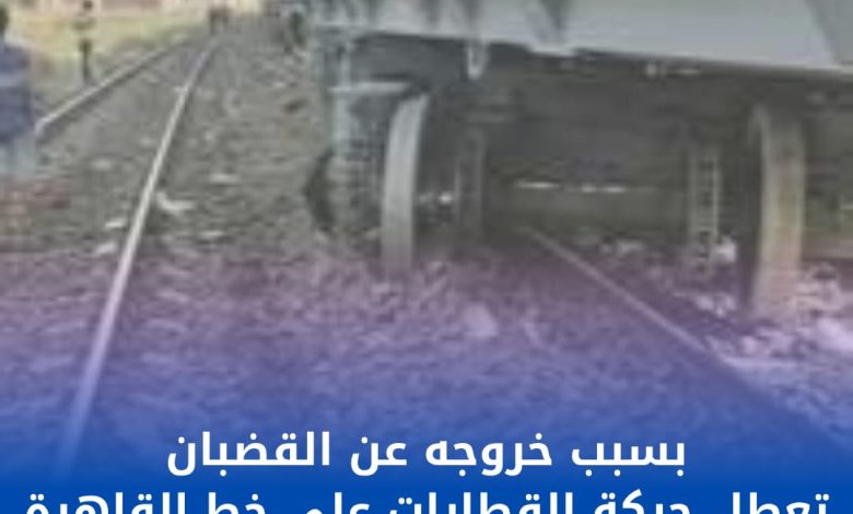 تعطلت حركة مسير القطارات على خط القاهرة الإسكندرية بالقرب من بنها بمنطقة عرب الرمل نتيجة خروج بعض عربات من قطار رقم 906 مكيف الإسكندرية القاهرة عن مسارها.